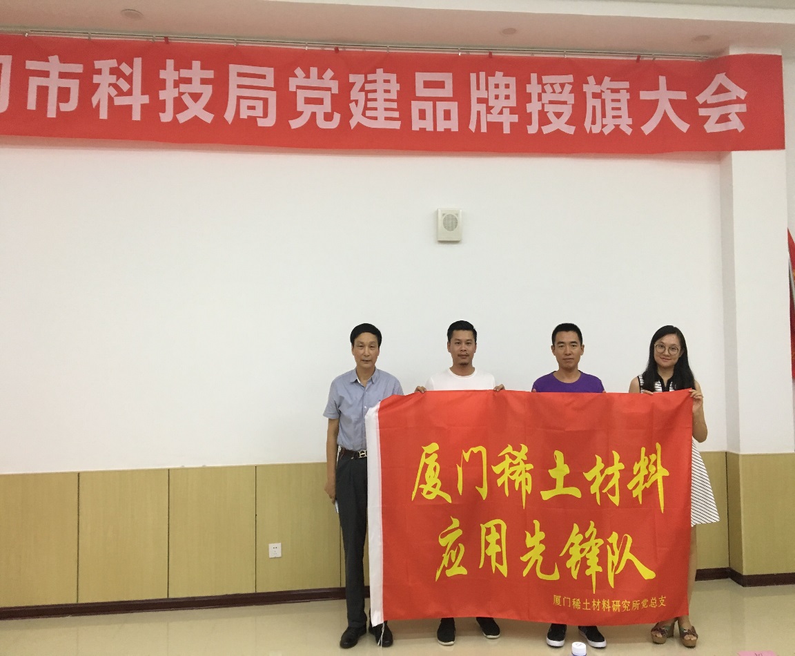 8月16日,厦门市科技局直属党委组织召开了厦门市科技局系统第一批“党建先锋品牌”授旗仪式,稀土所党总支被授予“厦门稀土材料应用先锋队”党建品牌。