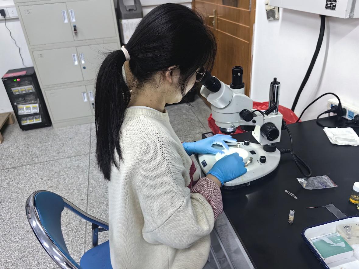 1222日,单晶解析竞赛在综合楼 325 实验室拉开帷幕。16 支参赛队伍从预先备好的晶体粉末中精心挑选晶体样品,运用单晶衍射仪器于规定时间内对晶体进行检测,并依据检测结果解析还原晶体数据。该活动既考验了参赛队伍快速挑选晶体、熟练操作仪器收录晶体数据的能力,又检验了其对晶体数据的解析水平。