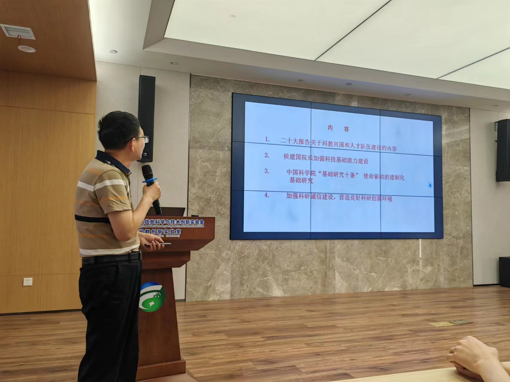 报告结束后,与会党员围绕会议主题进行了热烈的交流和讨论。大家认为,党的十八大以来,以习近平同志为核心的党中央把科技创新摆在党和国家发展全局的核心位置,把加强科技基础能力建设作为事关长远发展的一项重大战略举措,向科技工作者提出了更高的要求。大家纷纷表示,在今后的学习和工作中,要大力弘扬科学家精神,围绕科学前沿和国家战略需求,开展目标导向的原创性引领性科技攻关,勇攀科技高峰。