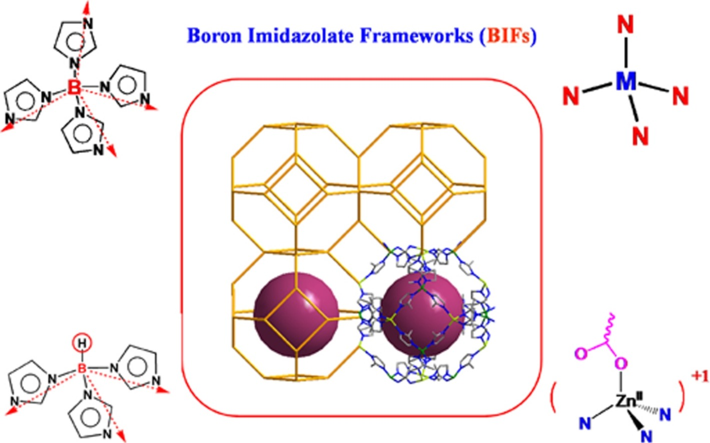 鉴于该团队在金属硼咪唑类分子筛材料 (BIFs) 研究方面的系统性工作,受邀在《配位化学评论》(Coordination Chemistry Reviews) 发表了题为 “Synthetic design of functional boron imidazolate frameworks” 的综述论文 (Coord. Chem. Rev. 2016, 307, 255-266)。该综述基于不同节点的硼咪唑配体进行分类,系统阐述了基于3-或4-连接硼咪唑配体构筑的具有类分子筛结构类型以及其他拓扑类型的BIFs材料的最新进展。文中也提出了构筑特定类型拓扑尤其是沸石分子筛型拓扑的BIFs材料的基本设计原则和合成方法,为发展新型类分子筛材料提供了科学理论和实验指导。