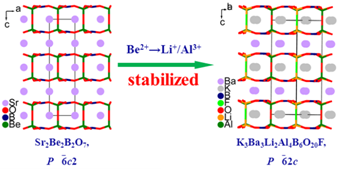深紫外激光由于波长短、加工精度高的优点,在半导体光刻、激光光电子能谱仪和激光切割等方面具有重要应用。目前,KBe2BO3F2(KBBF)是唯一能实际输出深紫外激光的非线性光学(NLO)晶体,但是,KBBF含剧毒铍元素且其晶体层状生长习性严重。因此,急需探索新型深紫外NLO晶体材料。