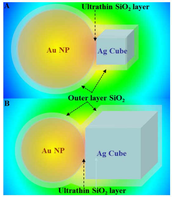 表面等离激元是贵金属纳米粒子与光相互作用时,纳米粒子表现出的一种光学性质。表面等离激元在化学分析传感、生物成像、表面增强光谱等领域都展现出了重要应用价值。纳米粒子耦合是调控表面等离激元性质的一种有效方式。然而如何将各种贵金属纳米粒子在有效耦合的距离尺度(<5nm)内形成功能协同的新颖纳米结构仍然是目前面临的科学挑战。