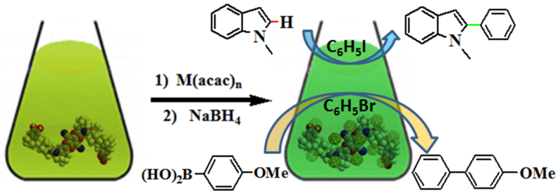 与均相催化剂相比,异相催化剂可以回收再循环使用,但其活性通常较低,而将其均相化能有效地结合均相和异相催化的优点,因此是解决异相催化剂活性低这一短板的有效途径之一。近年来,金属-有机框架(MOFs)化合物,也称作多孔配位聚合物,因其具有高比表面积、可调的孔道,是优良的纳米催化剂载体之一。将金属纳米颗粒负载于MOFs上可实现异相催化性能,但进一步将多孔配位聚合物负载金属纳米颗粒的复合材料实现均相化并获得高效催化性能的研究目前还没有报道。
