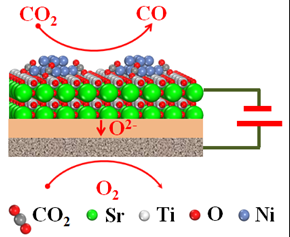 固体氧化物电解池可高效电解CO2/H2O,将电能转化为燃料能源,法拉第电流效率可高达100%,在可再生能源利用方面具有重要的研究意义和商业化应用前景。氧化还原稳定的钙钛矿型SrTiO3基陶瓷电极可实现直接高温电解过程,且高温稳定性和热循环性能优异,但陶瓷电极催化活性不足仍然是一个巨大的挑战。