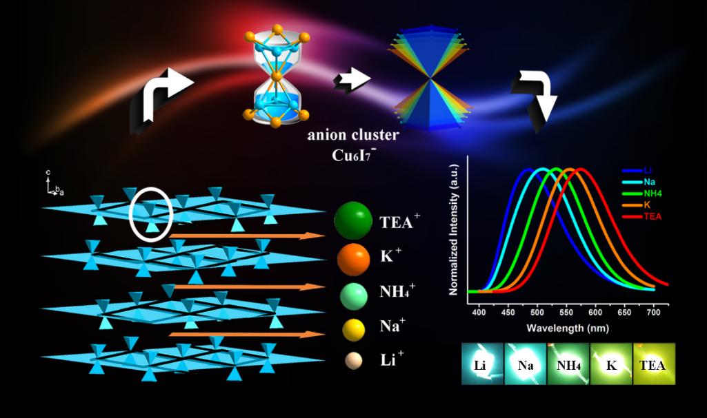 d8/d10过渡金属簇具有特殊的金属-金属作用和丰富的光、电、化学性质,在光学传感、生物标记、催化和光电器件等领域具有巨大的应用潜力,受到了广泛的关注,特别是成本较低、储存丰富、合成条件温和的铜碘簇。然而,由于缺乏有效的合成策略,大部分铜碘簇都是中性的,阴离子型或阳离子型铜碘簇目前报道较少,大大限制了这类化合物的研究和发展。