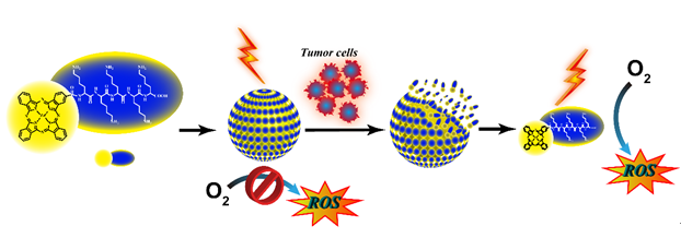 在国家自然科学基金面上项目、福建省自然科学基金、中科院先导专项等的资助下,福建物构所结构化学国家重点实验室陈卓课题组在建立新型材料的结构设计与生物应用平台的同时,开展了系列新型光敏剂的研发及其光动力学治疗研究。课题组先后利用固相合成法成功制备了高纯度且组分单一的单羧基取代酞菁锌,突破了传统酞菁光敏剂成分不单一、组分不确定以及肿瘤靶向性不足的关键技术难题,并在此基础上,研发出一系列对特定肿瘤细胞更具靶向功能的新型酞菁光敏剂,提高其对肿瘤细胞的靶向性,获得特异性更强的抗肿瘤作用。目前,该课题组和福州大学化学学院生物药光动力治疗技术国家地方联合工程研究中心李金宇课题组合作,报道了一种对肿瘤部位具有智能靶向的自组装光敏剂的抗肿瘤疗效,其相关成果发表于ACS Applied Materials & Interfaces 2018, 10, 15369-15380,文章的第一作者是陈卓课题组的硕士研究生贾玉华。该研究成果为在未来的光动力学疗法市场上开发出高效、高靶向性、可用于精准肿瘤治疗的光敏剂提供了一个崭新思路。