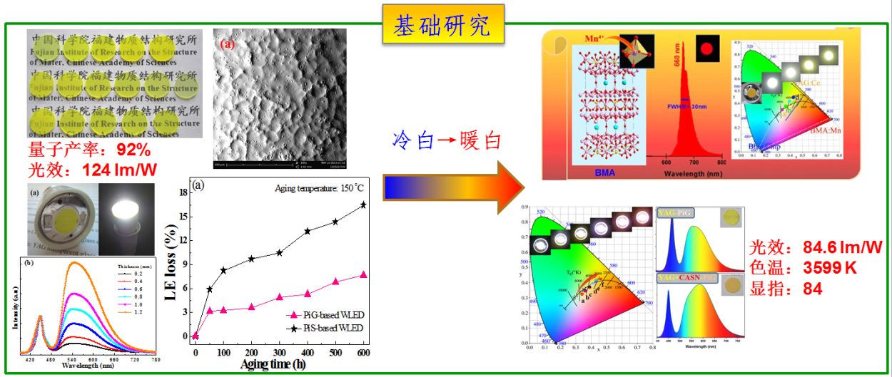 福建物构所中科院功能纳米结构设计与组装重点实验室王元生研究员团队在国家重点研发计划、国家基金项目、福建省科技项目、海西研究院“一三五”规划项目和林航副研究员海西研究院“春苗人才”专项基金等资助下,在高功率白光LED用微晶玻璃荧光材料及其应用方面取得系列研究进展,相关成果相继发表在Laser& Photon. Rev. 2014, 8, 158;Laser& Photon. Rev. 2017,11,1700148;Chem. Mater. 2016, 28, 3515;ACS Appl. Mater. Interfaces 2014, 6, 22905;ACS Appl. Mater. Interfaces2014, 6, 21264;ACS Appl. Mater. Interfaces 2015, 7, 21835等杂志上,受到了国内外同行的广泛关注。