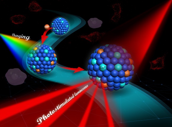 光激励发光材料可将短波长的激发光能量储存在基质陷阱中,并在长波光子如近红外光的激励下发射短波光子,在辐射剂量计、红外成像、信息存储和发光涂料等技术领域具有广泛的应用。由于近红外光具有深层生物组织穿透、无背景荧光干扰和对生物样本损伤小等优点,因此近红外光激励纳米发光材料有望作为一类新型的荧光探针应用于生物医学领域。如何控制材料的陷阱深度和密度来研制出发光性能优良的光激励纳米材料是其生物应用的前提,也是该领域的一个技术挑战。