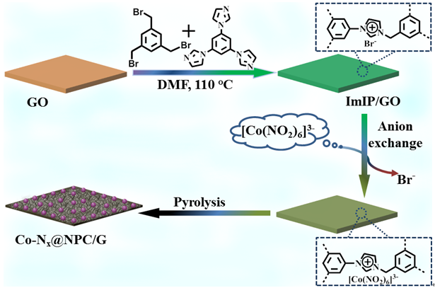 隔膜也是电池的重要组成之一,其作用是导通离子传输并防止电池短路。商业化PP 隔膜,由于其孔径较大,多硫化物能够较容易地通过,因而不能有效地抑制多硫化物的扩散和穿梭。在国家自然科学基金(21471151, 21673241))和中科院战略性先导科技专项(XDB20030200)的资助下,中科院福建物构所结构化学国家重点实验室王瑞虎研究员课题组利用金属纳米粒的催化效应,以离子聚合物包覆氧化石墨烯为前驱体,通过离子交换和高温焙烧技术制备得到了钴、氮均匀掺杂的多孔碳纳米片复合材料。该复合材料修饰的隔膜不仅可以通过物理/化学作用有效阻挡多硫化物穿梭通过隔膜,而且可以起到电催化剂作用,进一步促进被拦截的多硫化物进行催化转化。使用催化效应助力的修饰隔膜,高载硫(10.5 mg cm-2)自支撑电极在0.1 C的条件下表现出高的放电面容量(12.5 mA h cm-2)和体积比容量(1136 mA h cm-3)。该电化学性能优于目前报道的大多数碳基正极材料,实现了锂硫电池硫负载量、体积容量和面容量的同步提升,这对高能量密度锂硫电池的设计构筑具有重要意义。