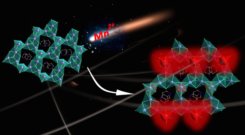 有机-无机铅卤化物因吸光系数高,光谱可调以及易溶液制备等优点,在固态照明方面吸引了广大科研工作者的兴趣,但是其块体材料发光效率低仍是大家面临的主要问题。传统提高其发光效率的方法主要基于胶体化学如量子点,然而,卤化铅杂化纳米晶具有固有的不稳定性。异金属配合物中的高效敏化发光为探索具有优异发光性能的铅卤素杂化物提供了新思路。
