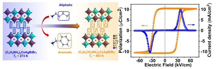 图:引入芳香族阳离子设计高居里温度二维多层杂化钙钛矿光铁电体