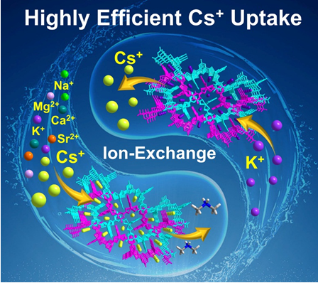 随着核能发展,与之相关的核废液处理处置问题已引起广泛关注。137Cs是核废料中常见的放射性元素之一。它是一种高释热裂变核素,半衰期约为30.17年,是核废液中主要的γ射线源,对核废液的贮存和处置影响大。137Cs+溶解度高、易迁移,其分离和去除易受干扰离子的影响,从复杂水溶液中高效捕获137Cs+仍然是一个严峻的挑战。