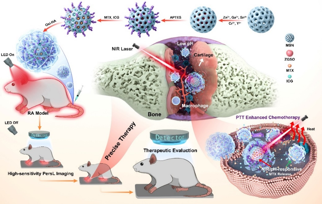 图1:首例稀土长余辉纳米平台实现RA的精准诊疗示意图