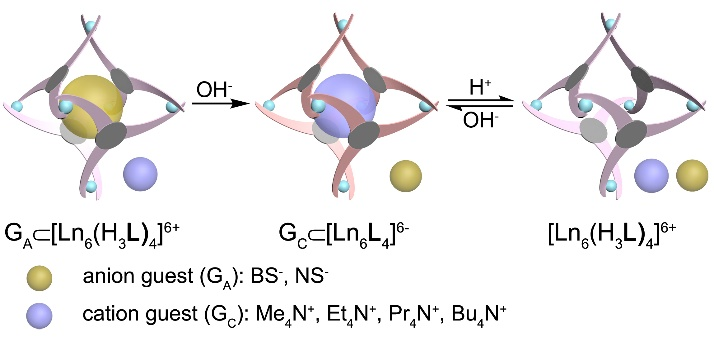 图1. 酸/碱调控稀土配位超分子主体的电荷翻转及其客体捕获与释放