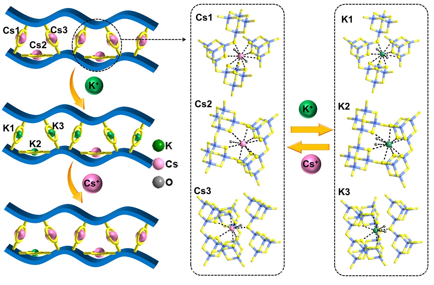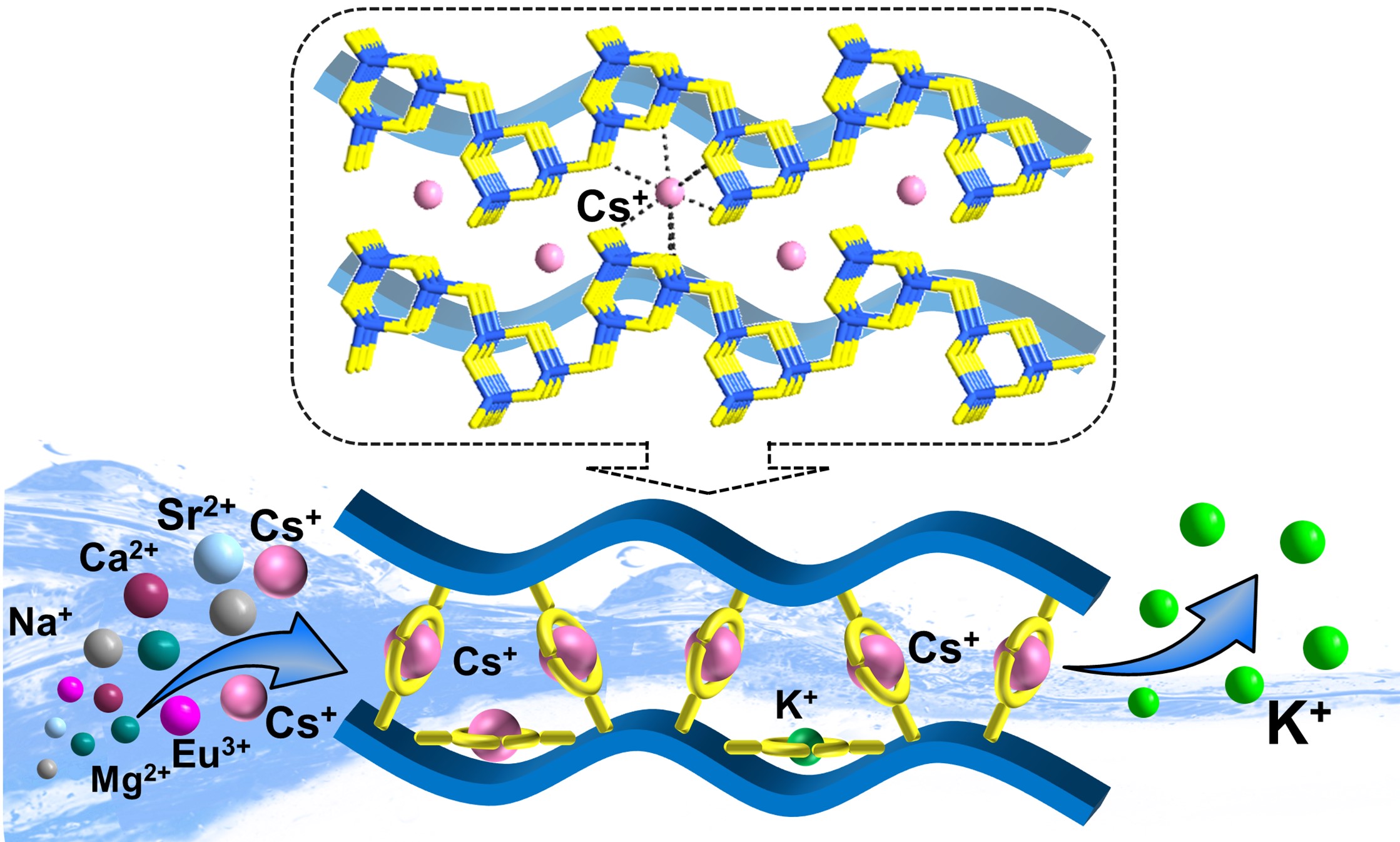 核工业的可持续发展与放射性废物的妥善处置密切相关。137Cs是乏燃料中γ放射性的主要来源之一,由于其放射性强、溶解度高、易迁移等特点,一旦释放到环境中,会对生态系统造成极大危害。环境放射性污染修复和乏燃料处理迫切需要高选择性捕获137Cs+离子。然而,由于强烈的库仑相互作用,传统Cs+吸附剂的吸附性能常会受到竞争离子(尤其是高价态金属离子)的极大影响。从复杂的放射性废液环境中高选择性分离铯仍然是一个挑战。