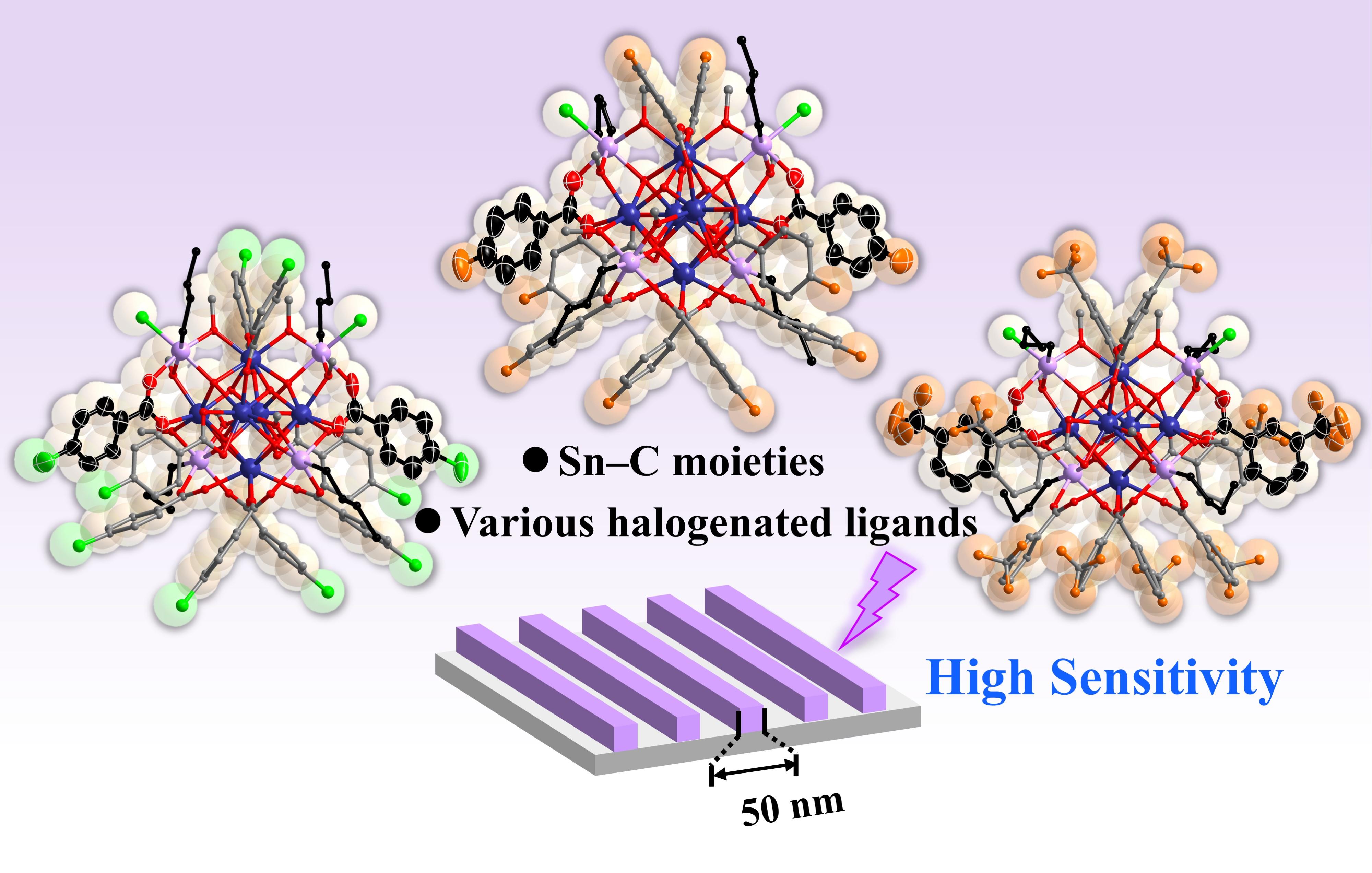研究进展一:通过异金属策略提高原子精确的有机锡纳米团簇的光刻灵敏度