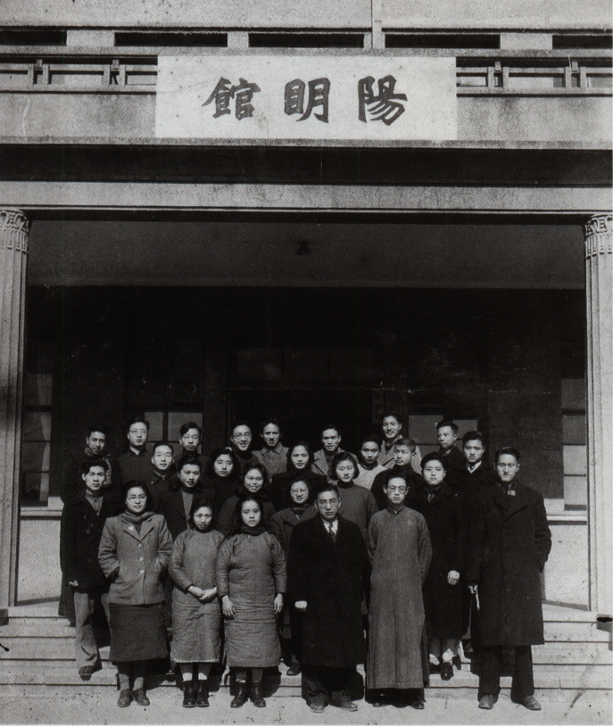 1947年3月卢嘉锡在浙江大学第一次讲课结束返回厦门前,与浙大化学系部分师生在浙大阳明馆前合影。前左四为卢嘉锡,左五为上世纪80年代任浙大校长的杨士林