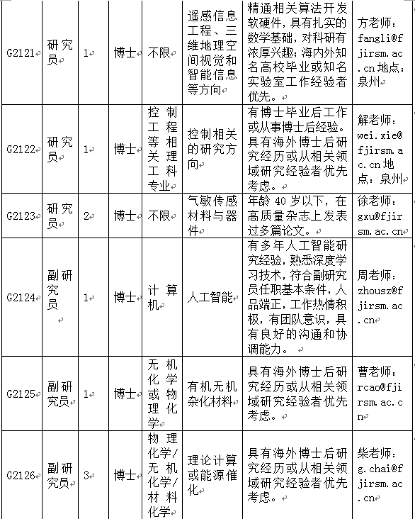 年龄35岁以下,具有海外博士后研究经历或从相关领域研究经验者优先考虑。