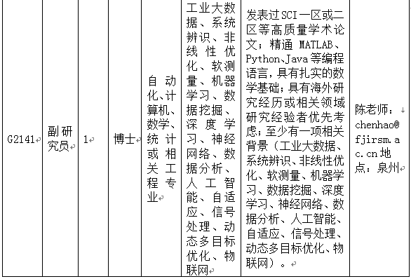 中国科学院福建物质结构研究所(海西研究院)2020-2021年度科研岗位招聘启事