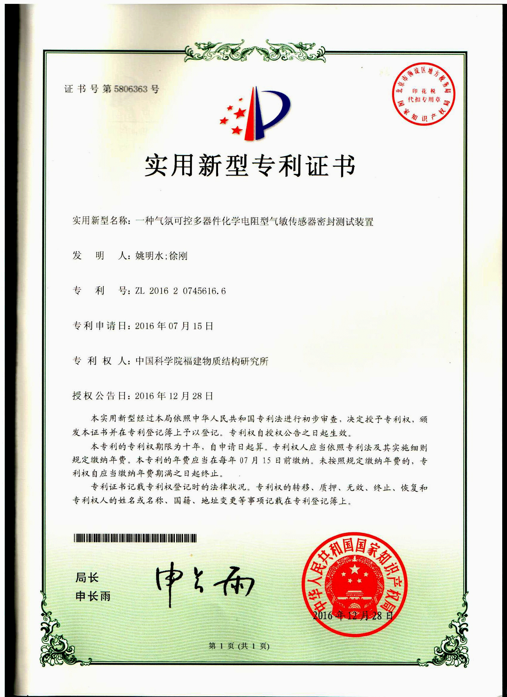 1. 一种气氛可控多器件化学电阻型气敏传感器密封测试装置