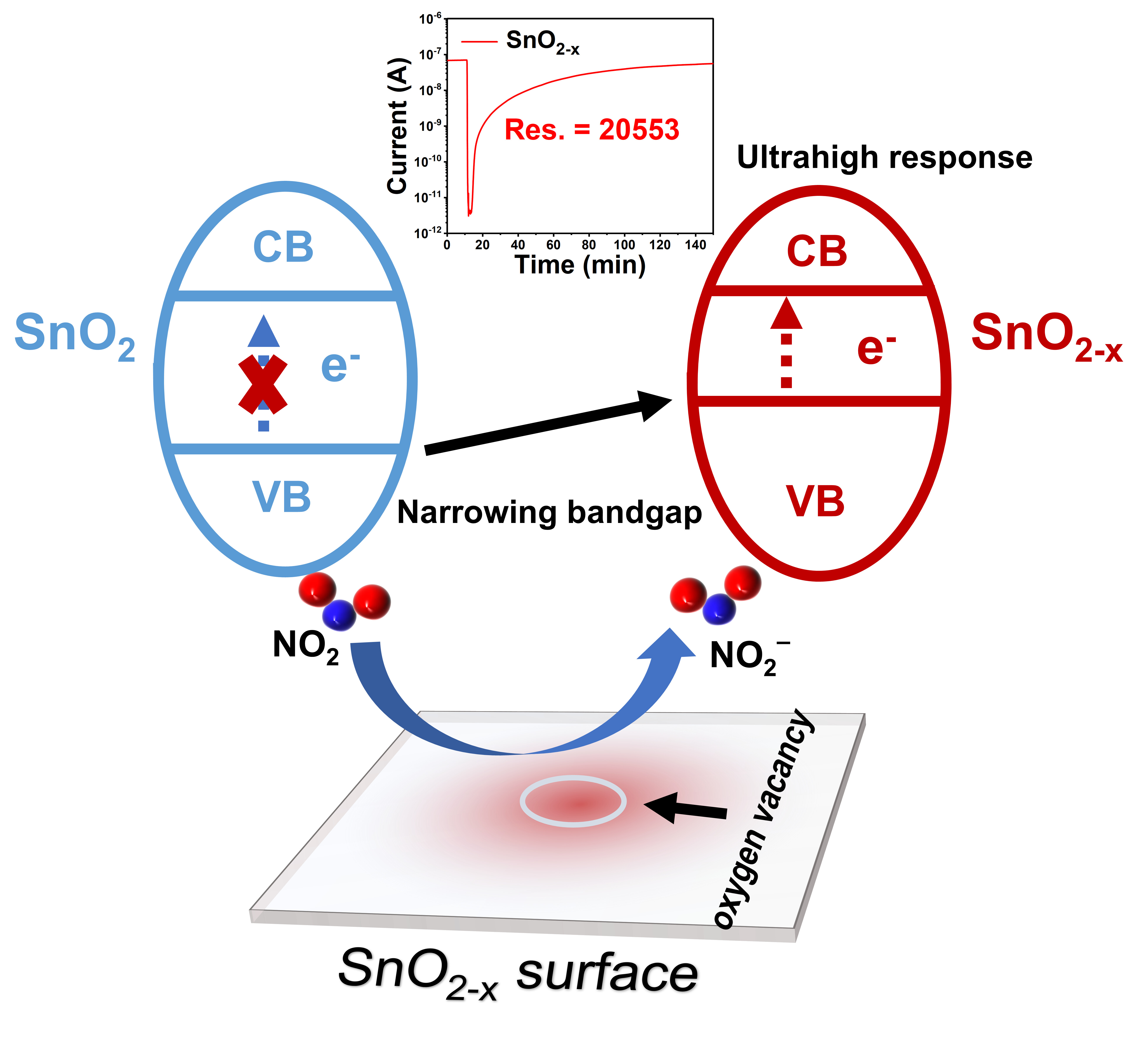 4.Enriched oxygen vacancies in SnO2-x with narrow bandgap for highly sensitive gas sensing