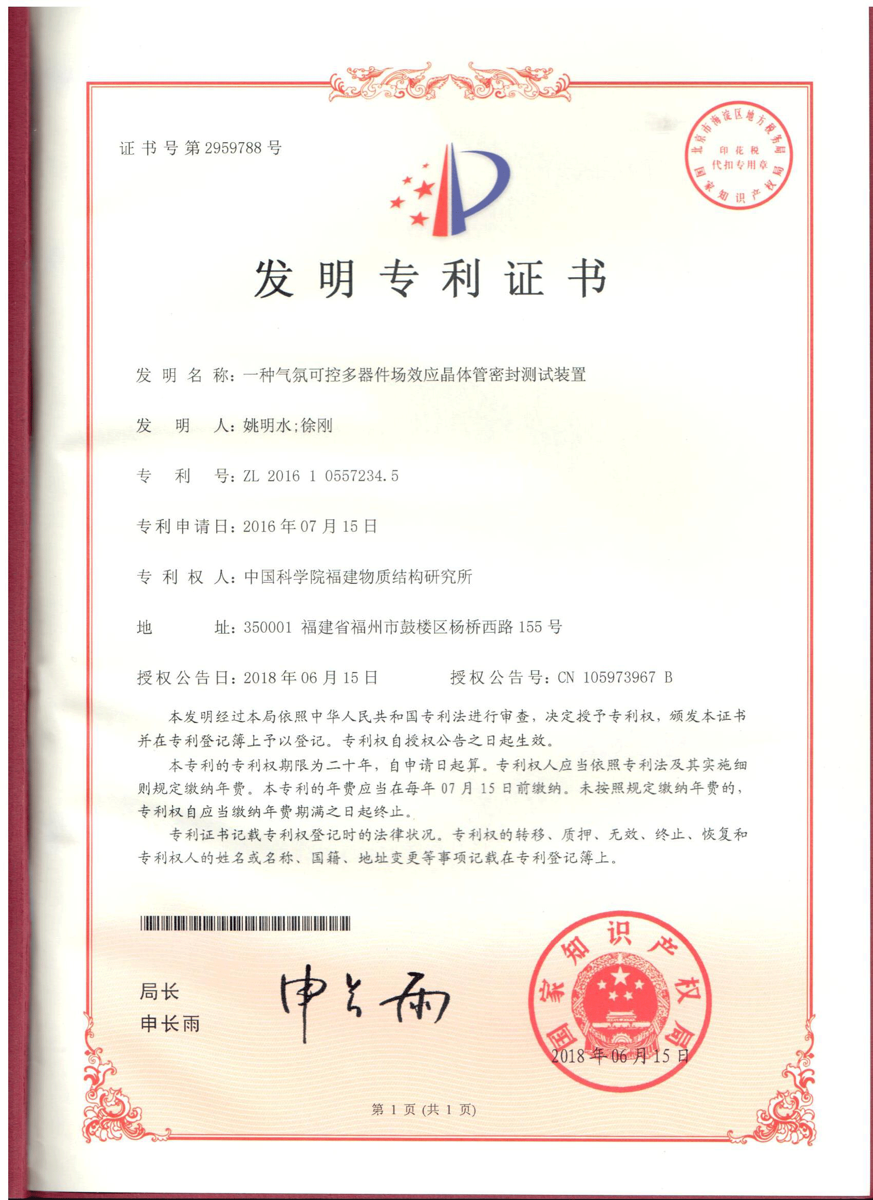2. 一种气氛可控多器件场效应晶体管密封测试装置