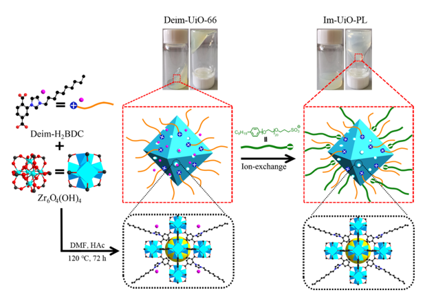 金属-有机框架(MOFs)材料是具有最大的比表面积的一类晶态多孔无机-有机杂化材料,在气体吸附分离、催化等领域具有很强的应用前景。然而几乎所有的MOFs都是固态材料,存在物理老化和机械疲劳等问题。相比之下,液态材料可以克服此类问题,并在传质传热方面更具优势,可以减少能耗,提高效率,在传统工业体系中,特别是在气体吸附分离方面,经常采用液态体系如CO2洗气系统。因此将固态MOFs制备成液态形式有利于与工业体系匹配,而且有利于增强其存储性能和赋予其它新的功能。然而要将多孔固态材料转变成液态的同时保持其多孔性,仍然极具挑战性。