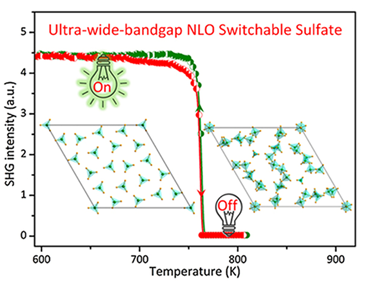 非线性光学(NLO)倍频开关材料,指的是NLO倍频响应在不同的外部刺激下发生可逆转换的一类材料,由于其在光电器件中的潜在应用,在光学开关、传感器、数据存储、智能器件和信息加密等高精尖技术领域有广阔的应用前景。但是,目前的NLO倍频开关材料主要集中在有机物和有机-无机杂化化合物中,其带隙值往往较窄,目前还没有深紫外NLO倍频开关材料的相关报道。
