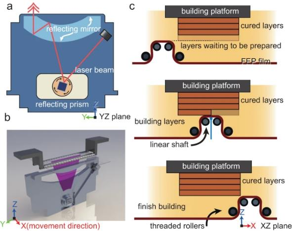 如何采用更有效的策略提升光固化3D打印弹性体的拉伸和回弹,创制出接近甚至超越基于传统弹性体所制器件的热力性能是具有挑战性的课题。其技术难点之一在于传统光固化3D打印设备所能打印的树脂粘度低,而高性能光固化材料往往又具有较高的粘度。