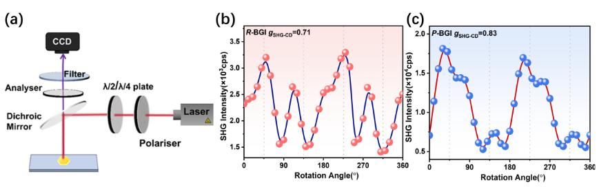 2.测试原理图 (a)R-BGI (b) P-BGI (c) SHG-CD响应。