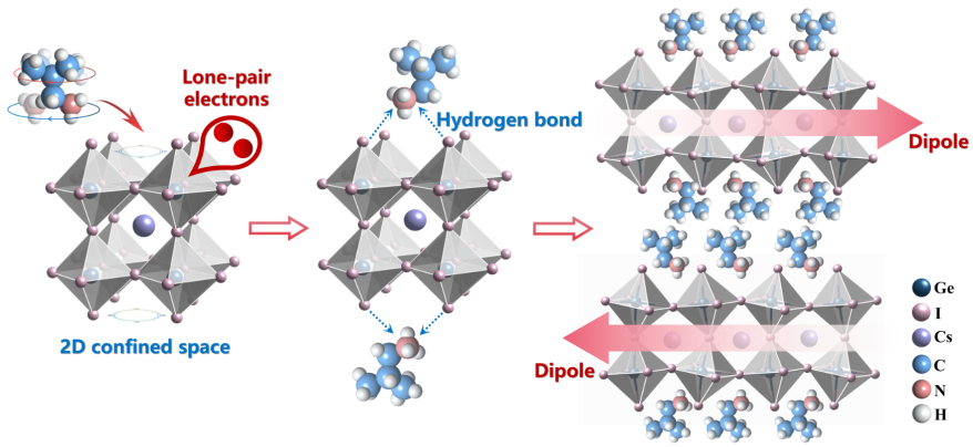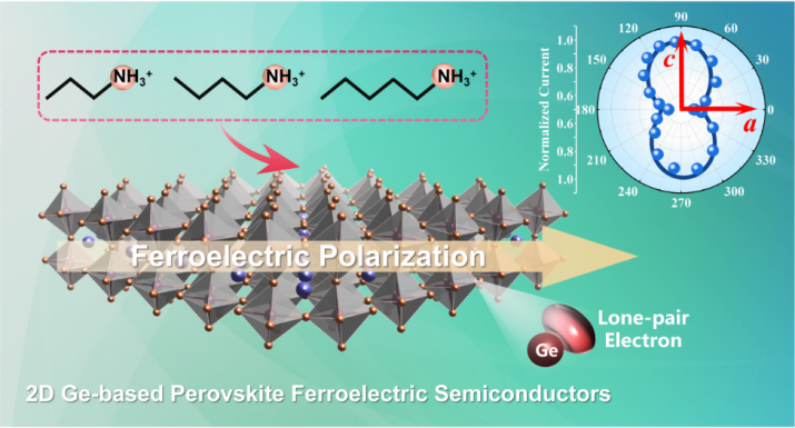 近年来,卤化物钙钛矿因其优异的光电特性、灵活多样的结构优势,在光电、铁电等领域受到了广泛关注。其中,锗基卤化物钙钛矿材料中Ge²+独特的4s²孤对电子立体化学活性效应,为新型铁电、光电和非线性光学材料的研究注入了新的活力。中国科学院福建物质结构研究所、功能晶体与器件全国重点实验室罗军华、刘希涛研究团队近期在锗基卤化物钙钛矿的铁电性能及非线性光学等方向取得系列突破。这些研究不仅揭示了锗基卤化物钙钛矿体系在铁电、光电和非线性光学响应方面的优异性能,也为开发下一代光电探测器等电子器件提供了新材料平台。