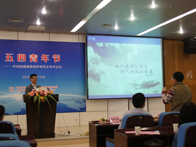 五月是青春绽放的季节。为了促进青年研究生思想交流和学术研讨,展示青年研究生的风采,5月15日上午,福建物构所举办了“五四青年节——研究生学术论坛”。本次论坛邀请毛江高、苏伟平、罗军华、孙庆福、鲍红丽等五位老师担任评审嘉宾,赵三根、姚明水等两位优秀青年职工和八位在学研究生为大家做了精彩的学术汇报。