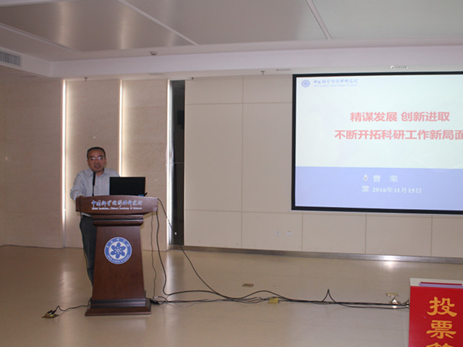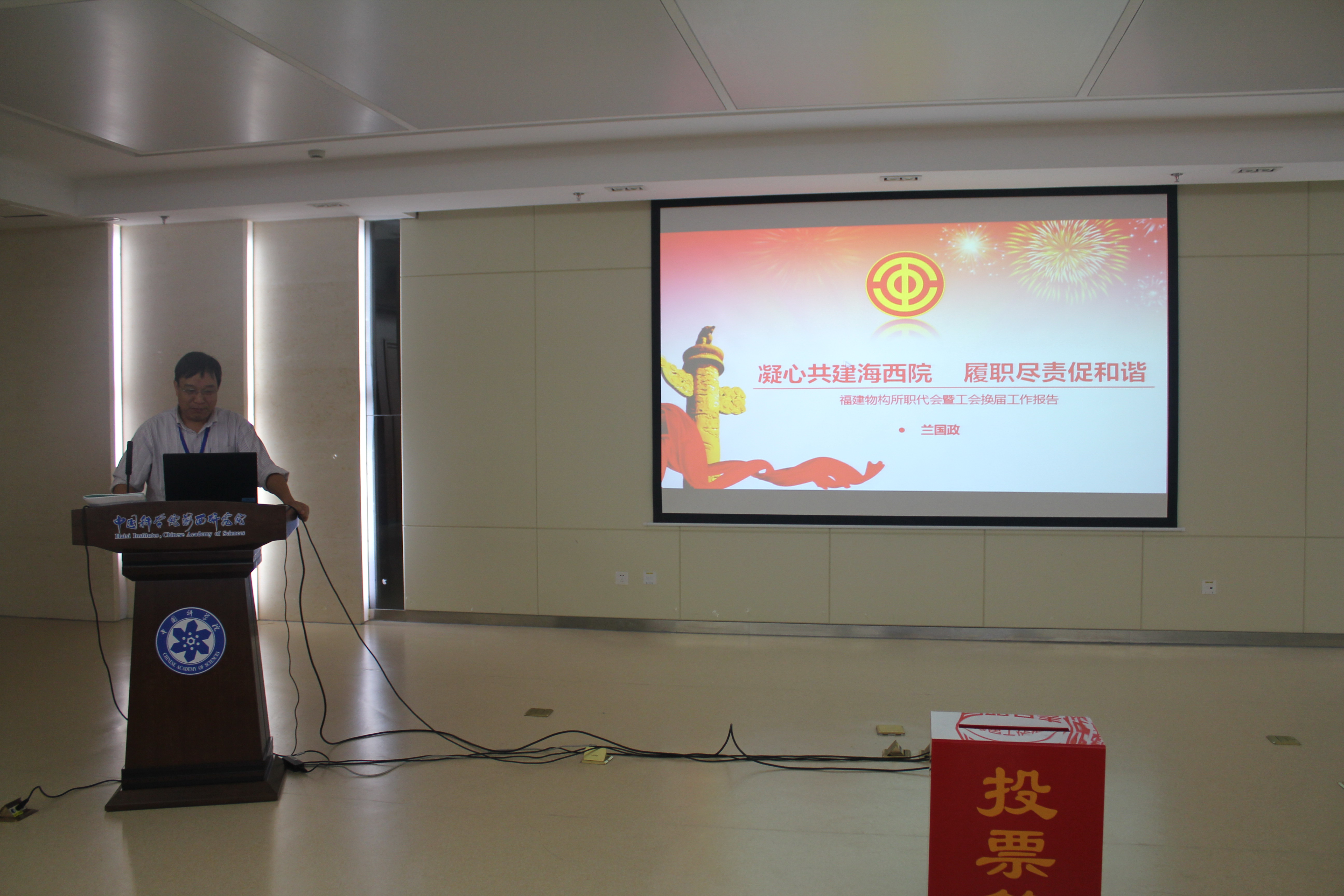 副所长、所第八届工会主席兰国政宣读了《省直机关工会关于同意中科院福建物构所工会换届选举的批复》。所长曹荣做了《海西研究院“十三五”规划报告》和题为《精谋发展、创新进取,不断开拓科研工作新局面》的工作报告,兰国政代表所第八届工会委员会做《凝心共建海西院 履职尽责促和谐》的工会工作报告,会议还先后听取了《财务决算报告和“三公经费”使用情况报告》、《工会财务工作报告和工会经费使用审计情况报告》。