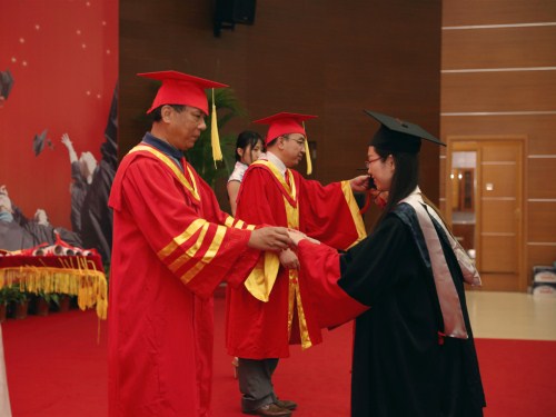 洪茂椿院士和曹荣为毕业生们授予证书和扶正流苏