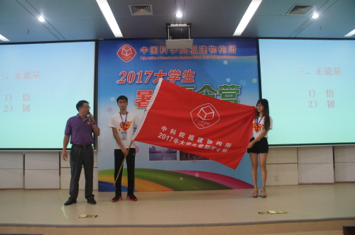 17日上午,夏令营开营仪式在物构所化学楼四楼报告厅举行,吴新涛院士和党委书记黄艺东、副所长卢灿忠等所领导及部分导师代表出席了仪式。开营仪式由研究生部主任张婧主持。黄艺东为夏令营营员代表授旗,吴新涛院士亲切寄语。黄艺东向同学们介绍了福建物构所的历史沿革、研究方向、发展现状和研究生培养概况,欢迎大家将来能够进入物构所学习和深造,使大家对物构所有了更详细、更深刻的认识。在轻松的气氛中,黄艺东还热情地向同学们介绍了福州的风土文化,希望同学们在“有福之州”留下美好的体验和回忆。卢灿忠主持了“第一作者论坛”。活动中,卓著、叶闰平、高美艳、张衡等四名物构所优秀毕业生与同学们分享了各自在科研学习和探索过程中的苦与乐,介绍了研究生的多彩生活,并回答了同学们提出的各种问题。