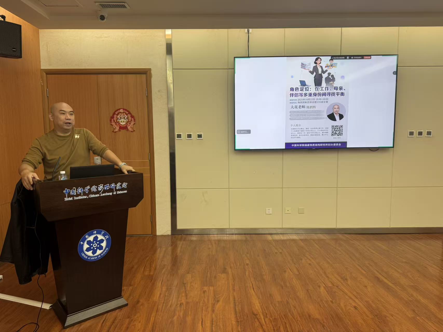 10月22日,中国科学院福建物质结构研究所妇女委员会在新区综合楼235会议室举办《角色定位:在工作、母亲、伴侣等多重身份间寻找平衡》心理健康讲座。此次讲座特邀国家二级心理咨询师、婚姻家庭咨询师,福建省众一泰应用心理研究中心执行总监、福建省健康管理师协会心理健康专业委员会副主委陈鹤辉担任主讲嘉宾。