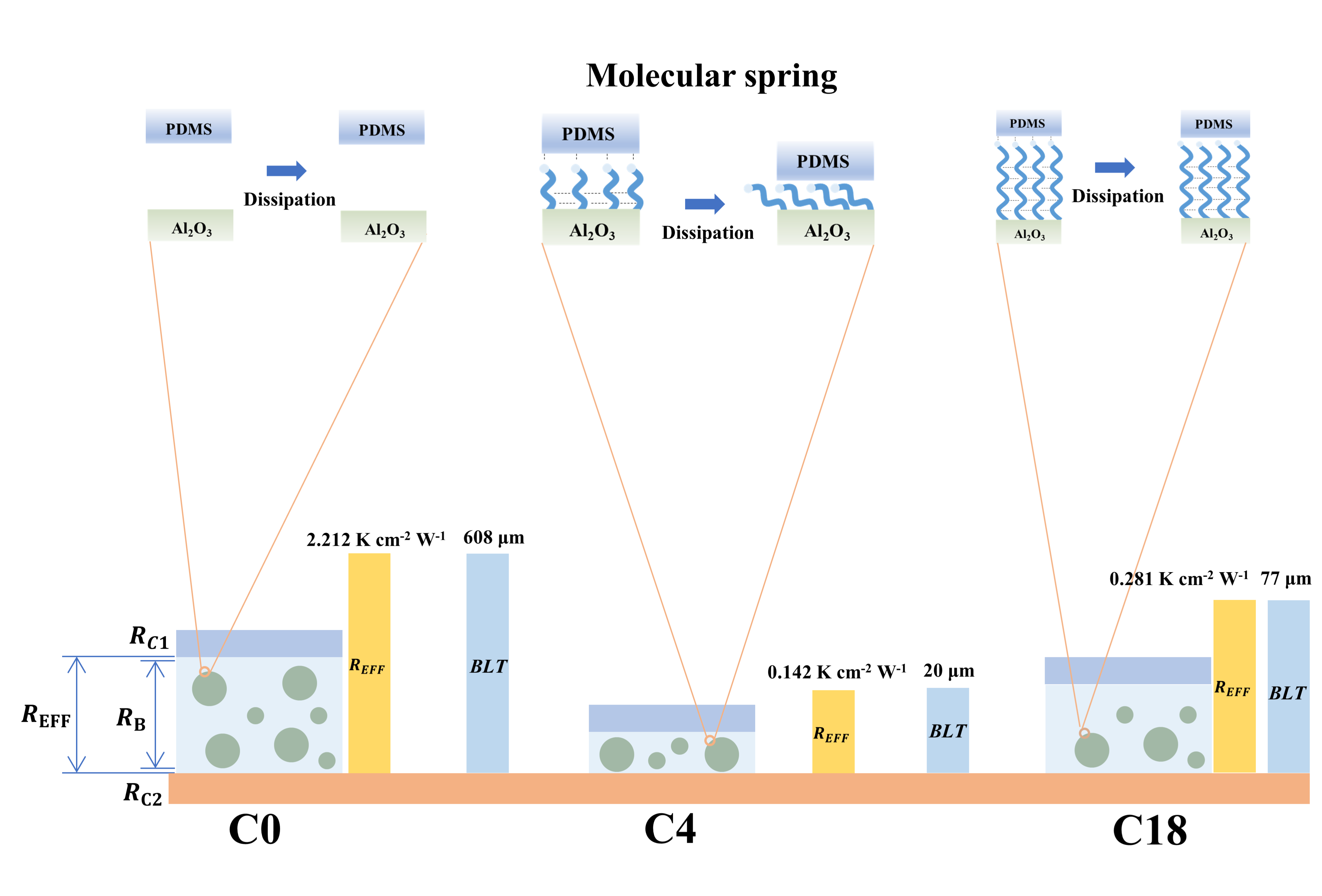 1. 在氧化铝填料表面的自组装单分子层中调整烷基链长度,优化有机硅热界面材料