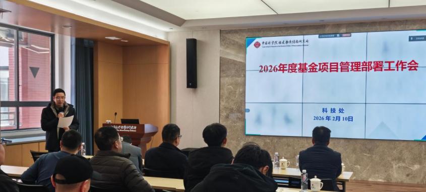 2月10日下午,福建物构所组织召开2026年度基金项目管理部署工作会,会议由副所长徐刚主持。会议以“线下+线上”形式召开,在厦门和泉州分中心设分会场,共计160多位科研人员参加了会议。