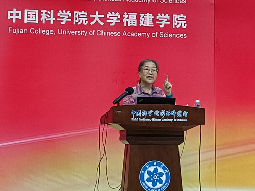 在典礼上,卢葛覃作《热爱祖国献身科教——追寻父亲卢嘉锡的足迹》的专题报告,她讲述了卢老先生的求学经历和科研探索之路,以及殚精竭虑地为祖国培养人才等生平事迹。她激励同学们要学习卢老先生“C3H3”的科研精神,更要学习他身为共产党人的革命精神,牢固树立“创新科技、服务国家、造福人民”的科技价值观。