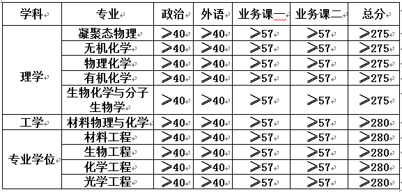 中科院福建物构所2015年硕士研究生复试基本分数线