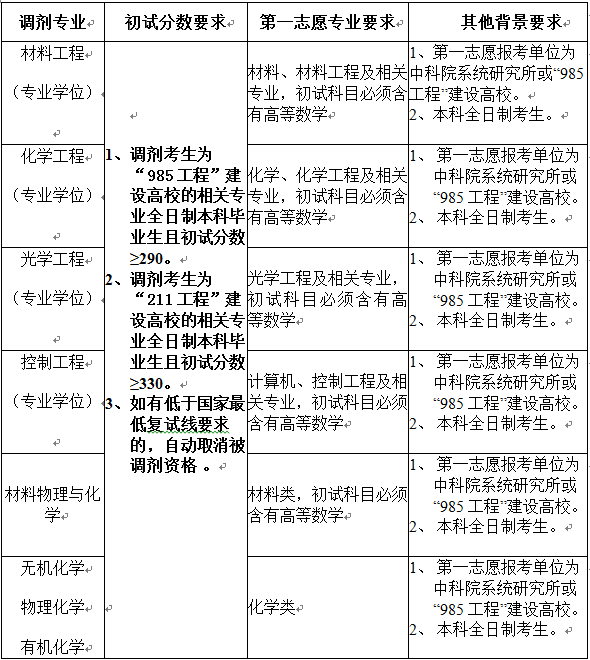 提交申请者需符合我所调剂生源要求,对不合条件者我所将不予受理和回复。中科院海西研究院(福建物构所)2018年拟在以下专业调剂部分优秀考生,具体要求如下: