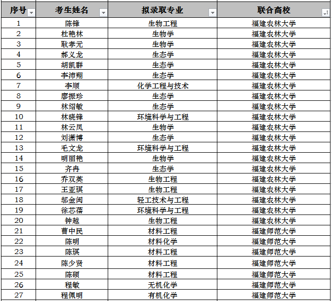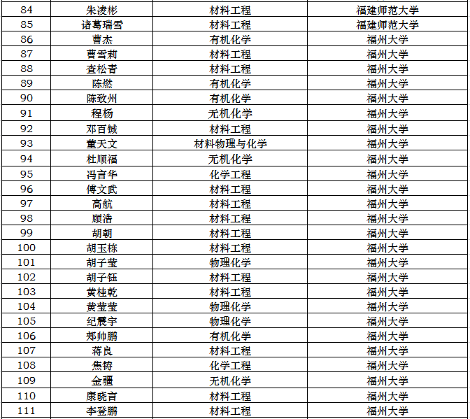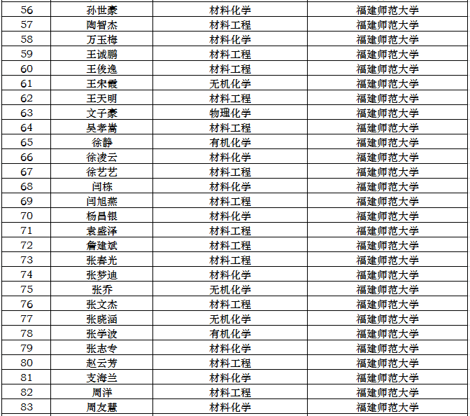 根据我所与高校联合培养研究生协议及复试规程的相关规定,经中科院福建物质结构研究所研究生招生工作领导小组审议,2018年与高校联合培养硕士生拟录取名单如下:
